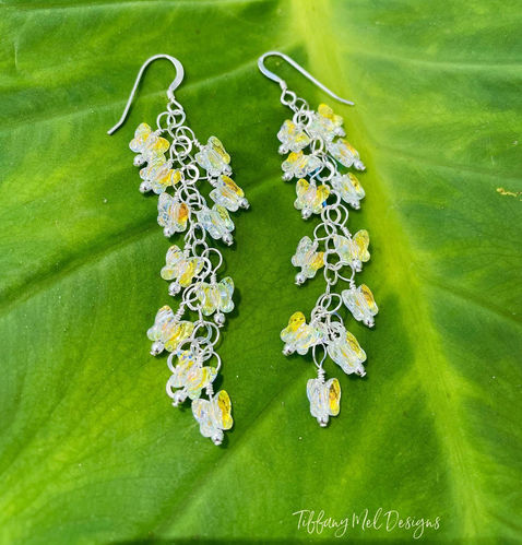 Shown in the photograph is genuine Swarovski crystal butterflies, in every color of the rainbow, gently cascading down a sterling silver chain.